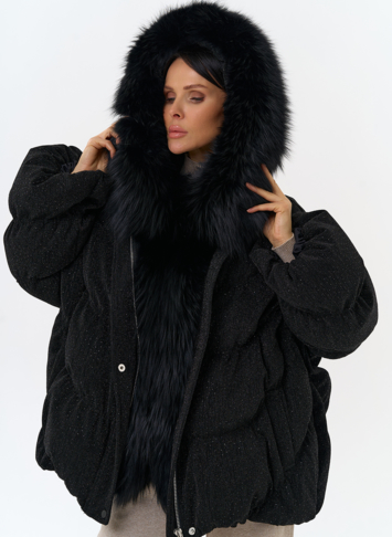 Крой воротника - капюшон, отделка чернобурка